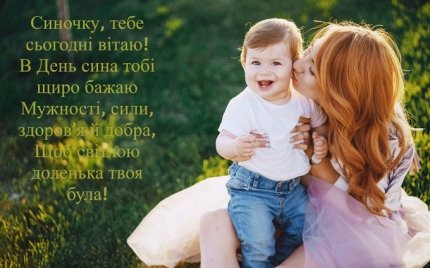 Синку, вітаю тебе з Днем сина! Бажаю тобі залишатися таким же добрим турботливим і водночас сильним та мужнім. Пам’ятай, що для нас ти назавжди залишишся дитиною і можеш розраховувати на нашу підтримку. В будь-яких ситуаціях дорога в батьківський дім для тебе відкрита.